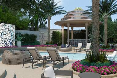Virgin Hotels Las Vegas officially opened in March, but has continued to feel like a work in progress—at least until now. The hotel finally welcomes the debut of its pool deck and Élia Beach Club on June 10, giving some much needed energy to its outdoor spaces; the heart of the property, both literally and figuratively. Many of the restaurants, including Casa Calvera, Kassi Beach House, and the upcoming incarnation of Todd English’s Olives (formerly a staple at the Bellagio) have patios framing an outdoor promenade with dishes available for poolside ordering. Money, Baby! is a bar and lounge with a club vibe for watching sports and placing bets on the second level above the pool deck.